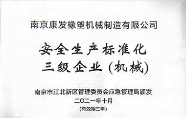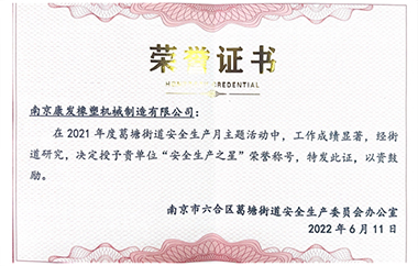 2021年度江北新區(qū)安全生產(chǎn)工作優(yōu)秀單位 | 安全生產(chǎn)標(biāo)準(zhǔn)化三級企業(yè)(機(jī)械) |